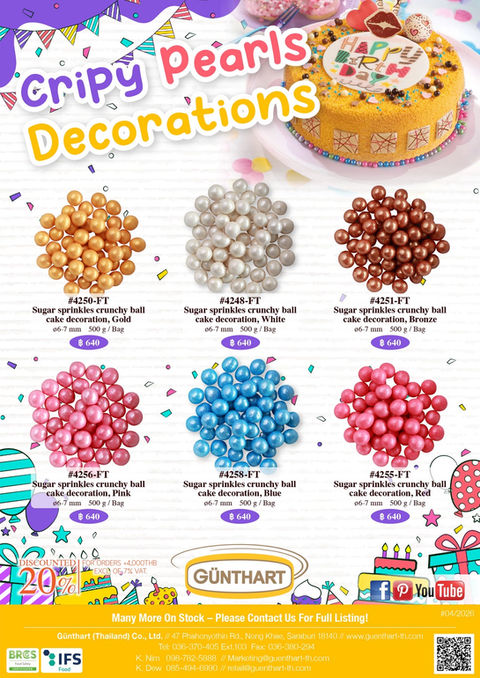 Fine decorations made of chocolate, sugar, marzipan and various decor compounds as well as sprinkles in many shapes and colors.
